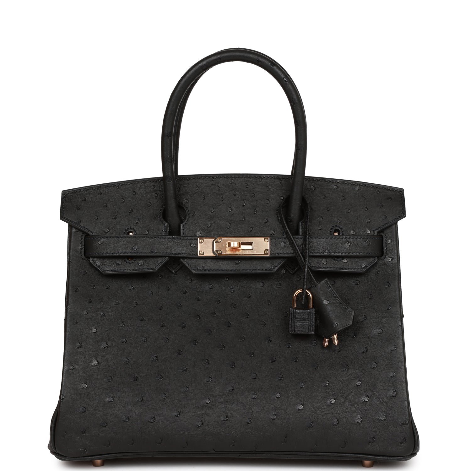 Hermes Birkin 30 Black Ostrich Rose Gold Hardware