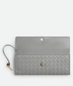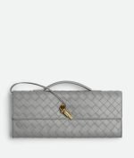 Intrecciato leather top handle clutch with metallic knot closure