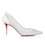 The Apostropha Mesh Strass is a sophisticated pump set on an 80 mm angled heel. This elegant Maison Christian Louboutin style is crafted in white mesh and adorned with hand-placed strass. Its pointed toe and audacious low-cut vamp showcase a timeless elegance.