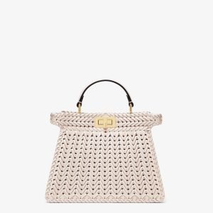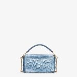 Iconic small Baguette bag, embroidered with light blue sequins of different shapes and sizes with a denim-effect finish. Trimmed in light blue calfskin and embellished with an FF clasp.