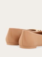 This contemporary ballet flat features a super soft patent leather upper with ruffles at the pointed tip and a new version of the Gancini buckle in golden metal for a chic look. Rubber flexible sole.