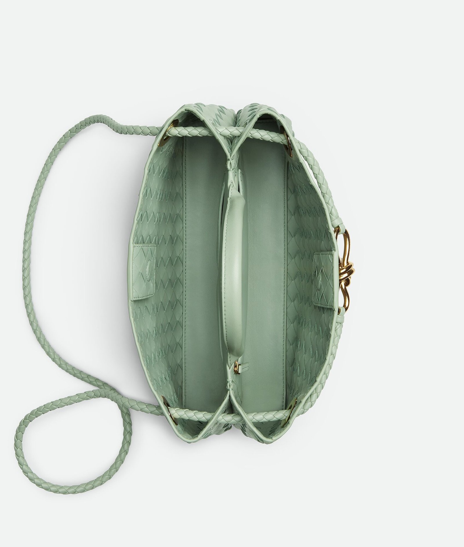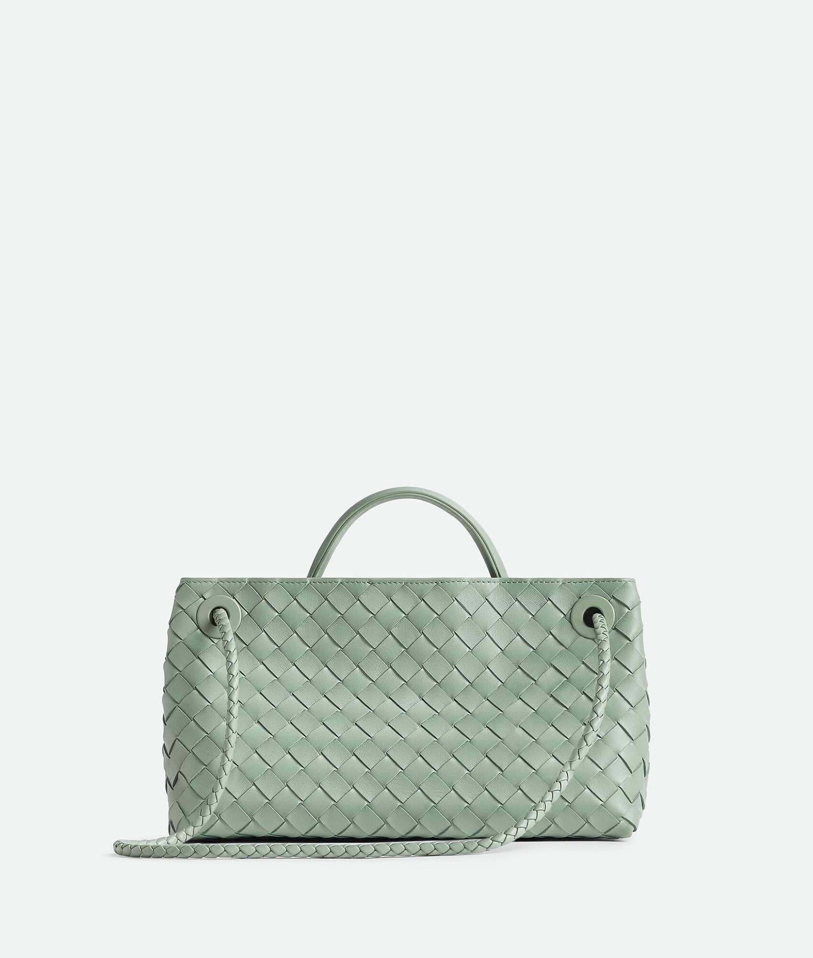 East-West Intrecciato leather top handle bag with sliding cross-body strap