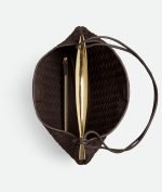 Large Intrecciato leather shoulder bag with metallic top handle and leather shoulder strap