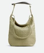 Intrecciato leather hobo bag with metallic top handle and leather strap