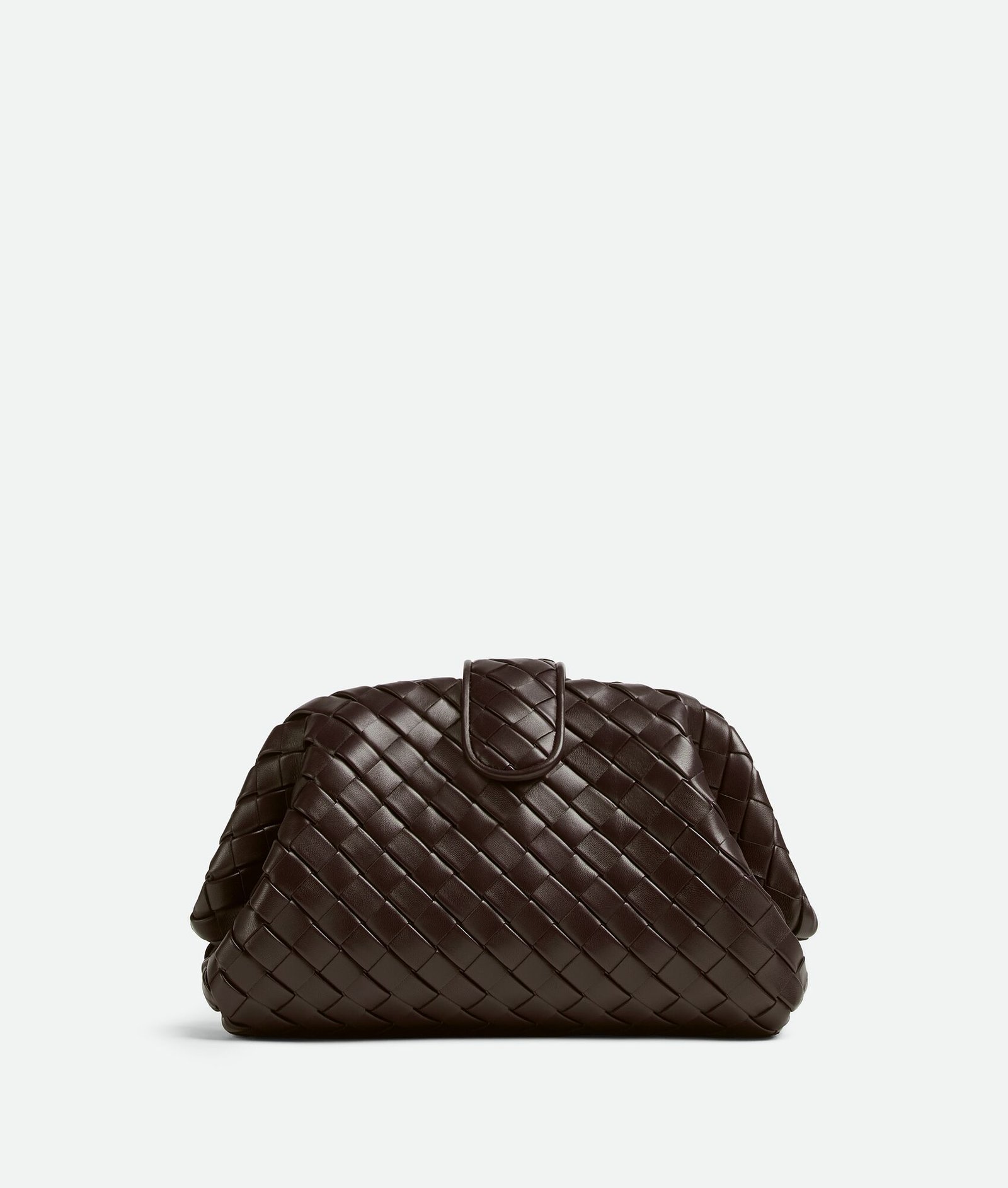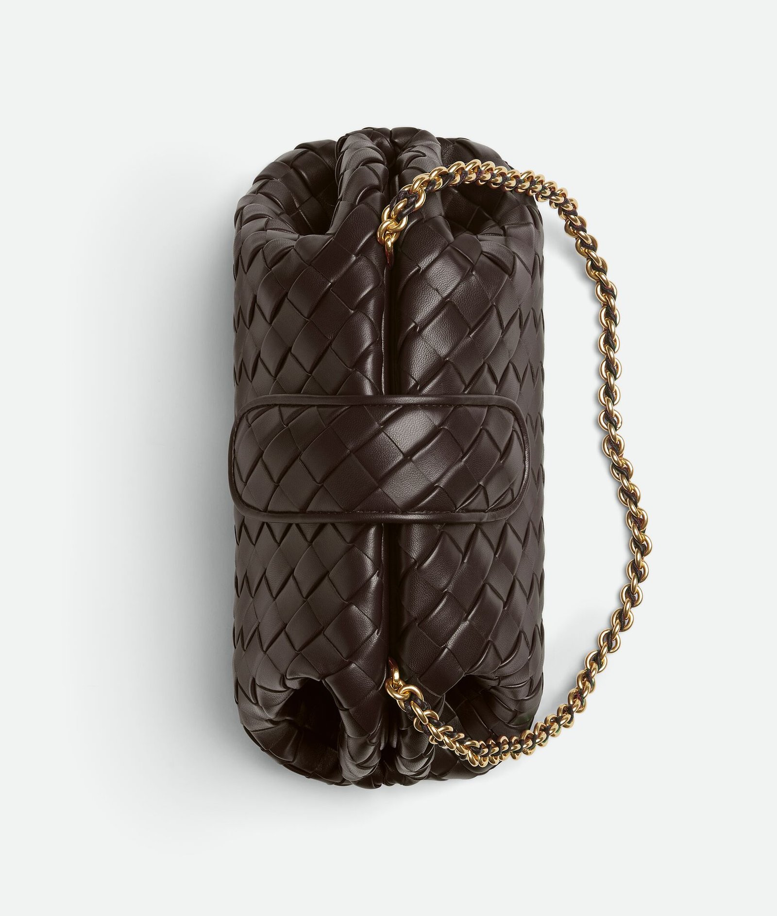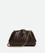 Padded Intrecciato leather teen clutch with leather braided metal chain