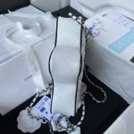 This Chanel CC Star bag is crafted from white satin with black hardware and black leather trim. It features an exterior back slip pocket, a double zip top closure and interwoven black metal chain links and white satin leather shoulder straps.