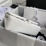 This medium classic double flap bag is crafted in white caviar leather with silver-tone hardware, featuring the signature CC turnlock closure on the front flap, half-moon back pocket, adjustable interwoven silver-tone chain and white leather shoulder strap.