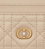 The Dior Jolie Freesia card holder is an elegant accessory from the House’s new line. Constructed in powder beige lambskin with Cannage stitching, it is accented by the CD signature embellished with a resin pearl. Featuring five card slots, the refined accessory will fit anywhere and can be paired with other Dior Jolie creations.