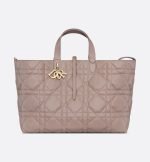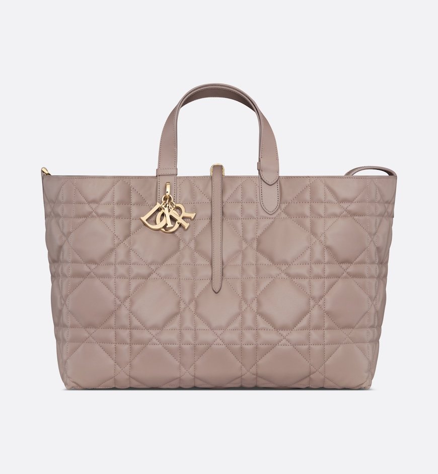 The Dior Toujours bag is distinguished by a casual and practical design. Crafted in warm taupe calfskin with Macrocannage topstitching, it showcases a spacious interior compartment with a matching pouch to organize the essentials. Its thin leather strap closure keeps items secure while the D of the CD Lock clasp twists to adjust the sides and enhance the bag’s silhouette. The leather handles can be adjusted using the small notches in order to be able to carry the large bag by hand or wear it over the shoulder.