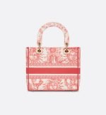 Part of the Dioriviera capsule, the Lady D-Lite bag captures the House’s vision of classic elegance and modernity. It is fully embroidered with the Toile de Jouy Soleil motif in coral, offering a new take on the iconic House pattern with suns and crescent moons layered into a floral design representing the four seasons. The front is accented by a Christian Dior Paris signature while pale gold-finish metal D.I.O.R. charms embellish and illuminate the silhouette. Featuring a wide, removable embroidered shoulder strap, the medium Lady D-Lite bag can be carried by hand or worn crossbody.