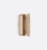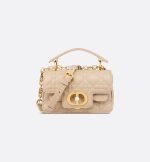 New for Summer 2024, the Dior Jolie Top Handle bag presents an elegant and functional design. It is crafted in powder beige calfskin with Cannage stitching and features a double flap enhanced by a CD signature embellished with a white resin pearl, as well as three compartments and a zip pocket to accommodate all the essentials, day or evening. The removable top handle is completed by a
