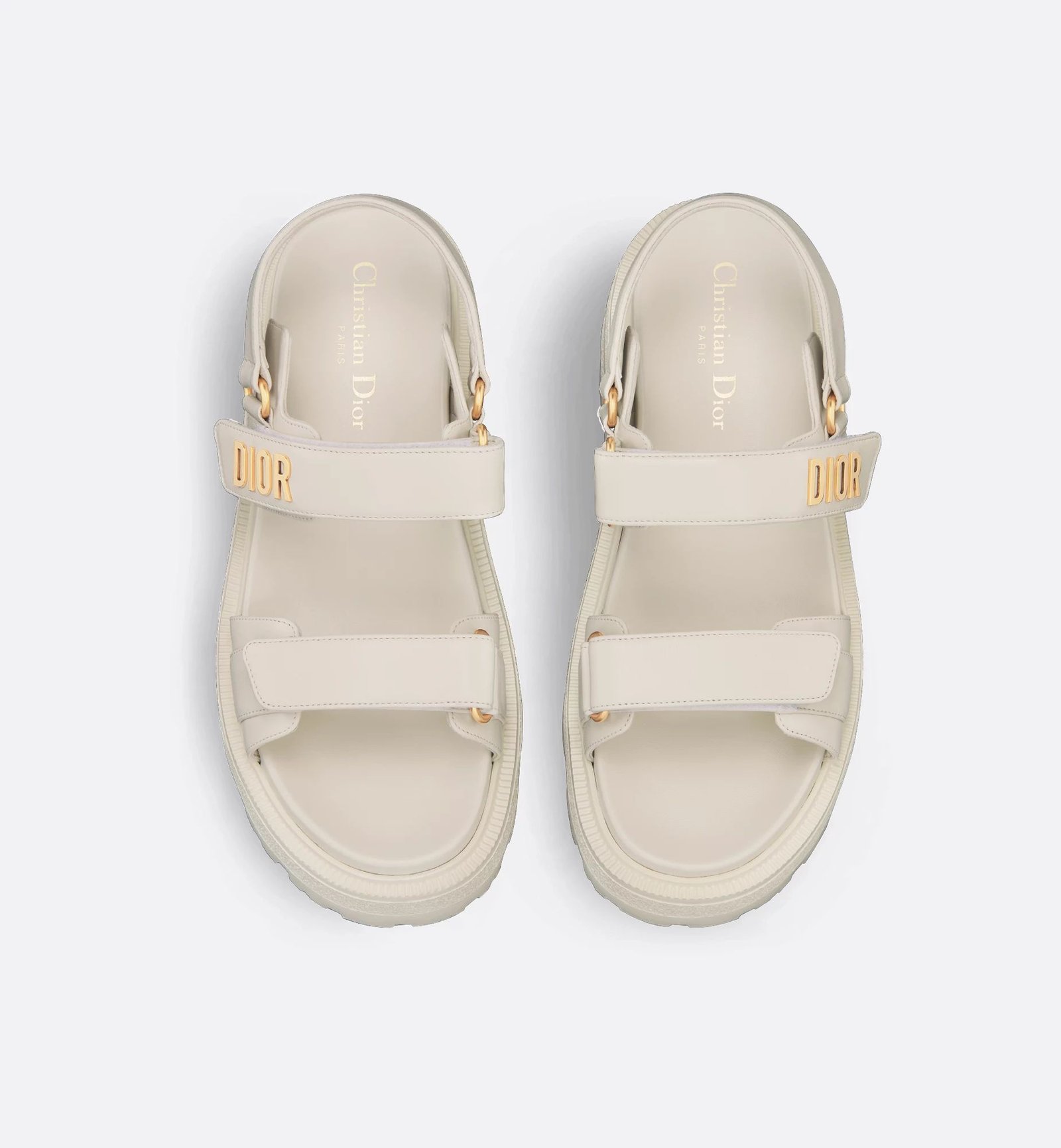 The Dioract sandal is recast into a modern platform. The anatomically shaped insole offers lightweight comfort. Crafted in white lambskin, it features self-fastening straps enhanced by a gold-finish metal Dior signature on the upper strap. The sandal will lend a contemporary touch to any look.