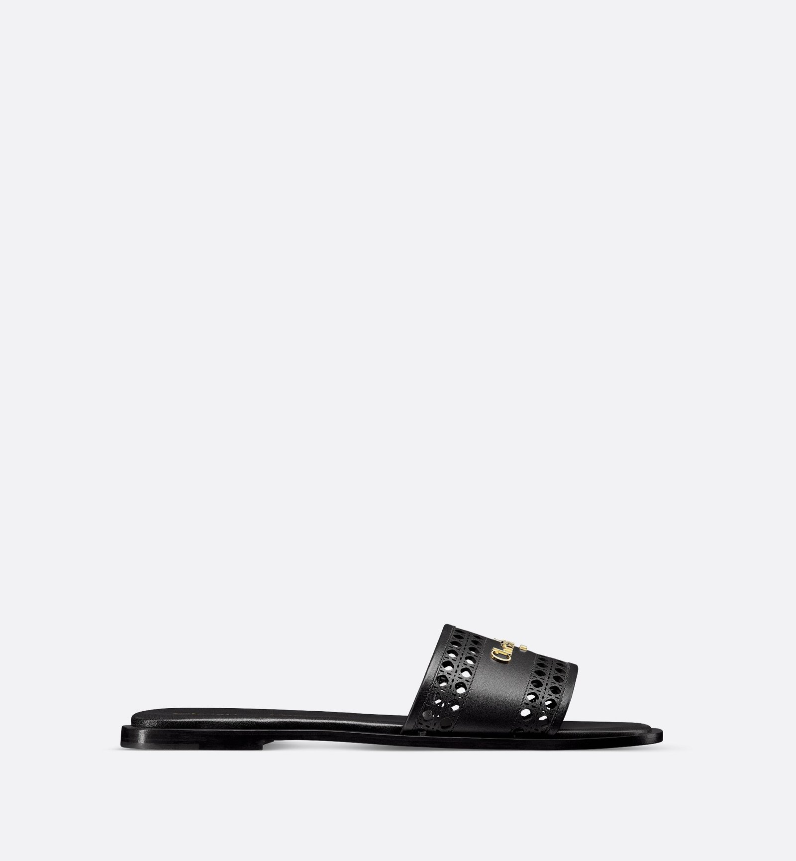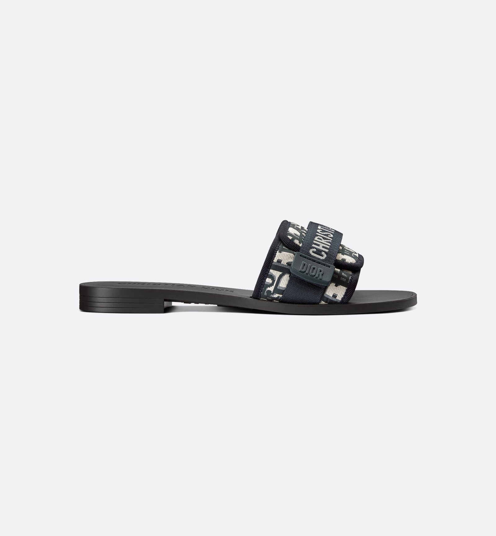 The Dio(r)evolution slide is an essential wardrobe piece. The adjustable self-fastening strap showcasing the Christian Dior signature covers a shiny technical fabric upper printed with a deep blue Dior Oblique motif. The supple tonal rubber sole builds on the casual appeal of the style.