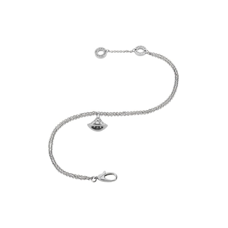 Inspired by feminine elegance and the allure of the Eternal City, the Divas’ Dream bracelet pays tribute to the most charming women with a unique Roman spirit. Feminine and refined, this bracelet captures the beauty of the marble of the Baths of Caracalla and the curves of the fan-shaped mosaics, the true essence of Italian beauty. Divas’ Dream bracelet in 18K white gold with pave diamonds. Length 5.90-7.50 inches (15-19 cm).