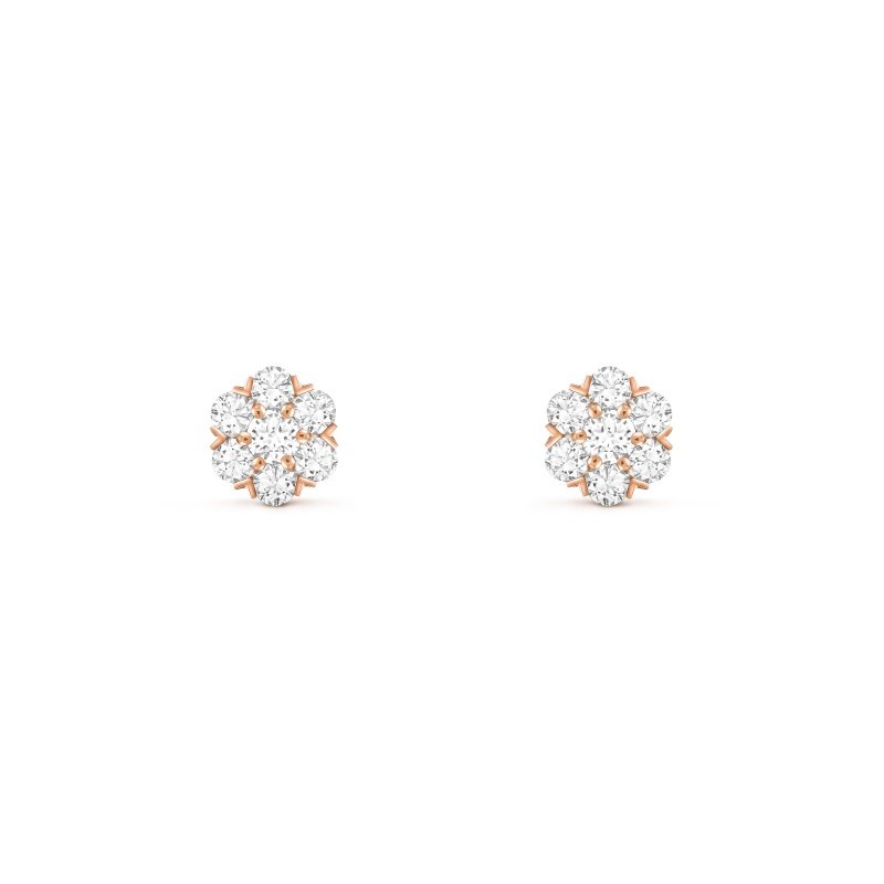 Fleurette earrings, 18K rose gold, round diamonds; diamond quality DEF, IF to VVS.