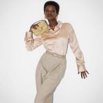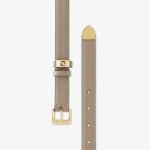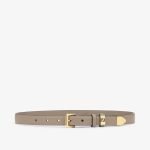 Slim belt with double loop and square buckle. Made of dove gray leather. Decorated with a metal FF logo tag on one of the loops. Gold-colored metal tip. Gold-finish metalware.