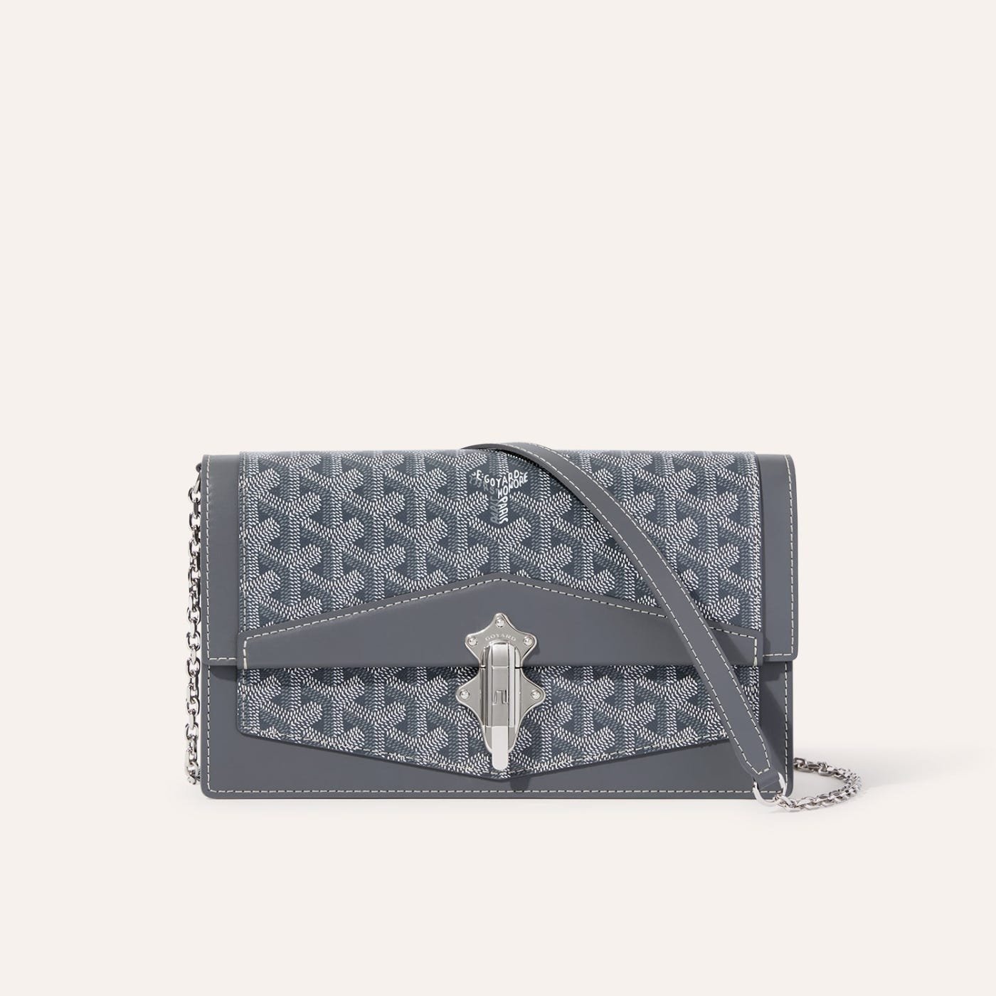 At once elegant and practical, the Duchess Marie-Caroline bag can be worn around the shoulder, cross-body style or carried by hand thanks to its removable chain strap. Its closing system is secured with a clasp, a nod to the historical trunk-making know-how of Maison Goyard. The Duchess Marie-Caroline bag is ideally complemented by the Insert Louise, as both share the same edgy look.