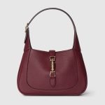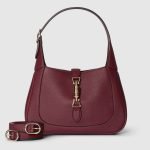 In the Fall Winter 2024 collection, the Gucci Jackie 1961 shoulder bag with new light gold-toned piston closure features fine Gucci Rosso Ancora red leather, highlighting the craftsmanship, crescent shape, and sleek silhouette of the House’s iconic handbag. This small size comes with a leather strap and additional green and red Web strap for different styling options.