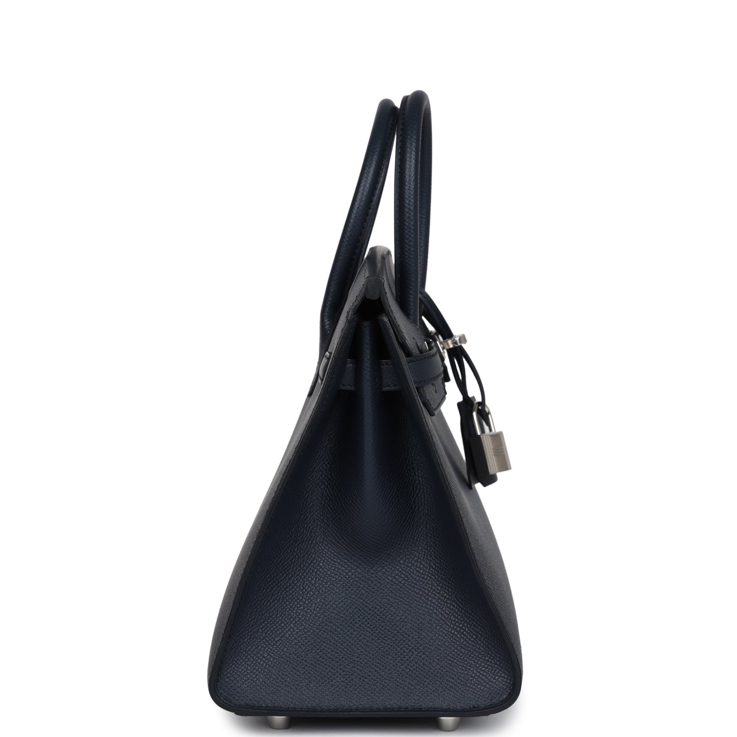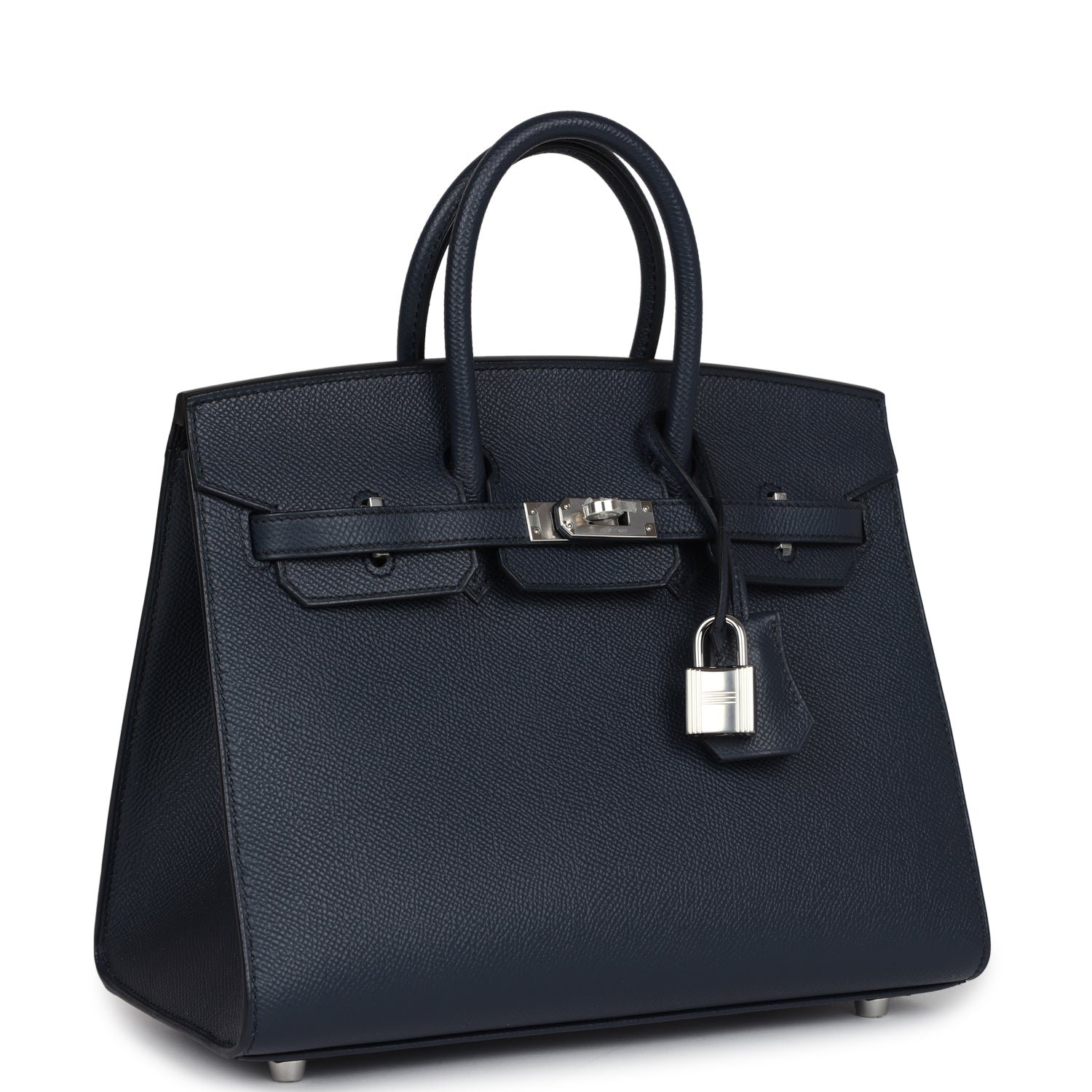 This Birkin is in Bleu Indigo epsom leather with palladium hardware and has tonal stitching,front flap, two straps withcentertoggle closure, clochette with lock and two keys, and double rolled handles.