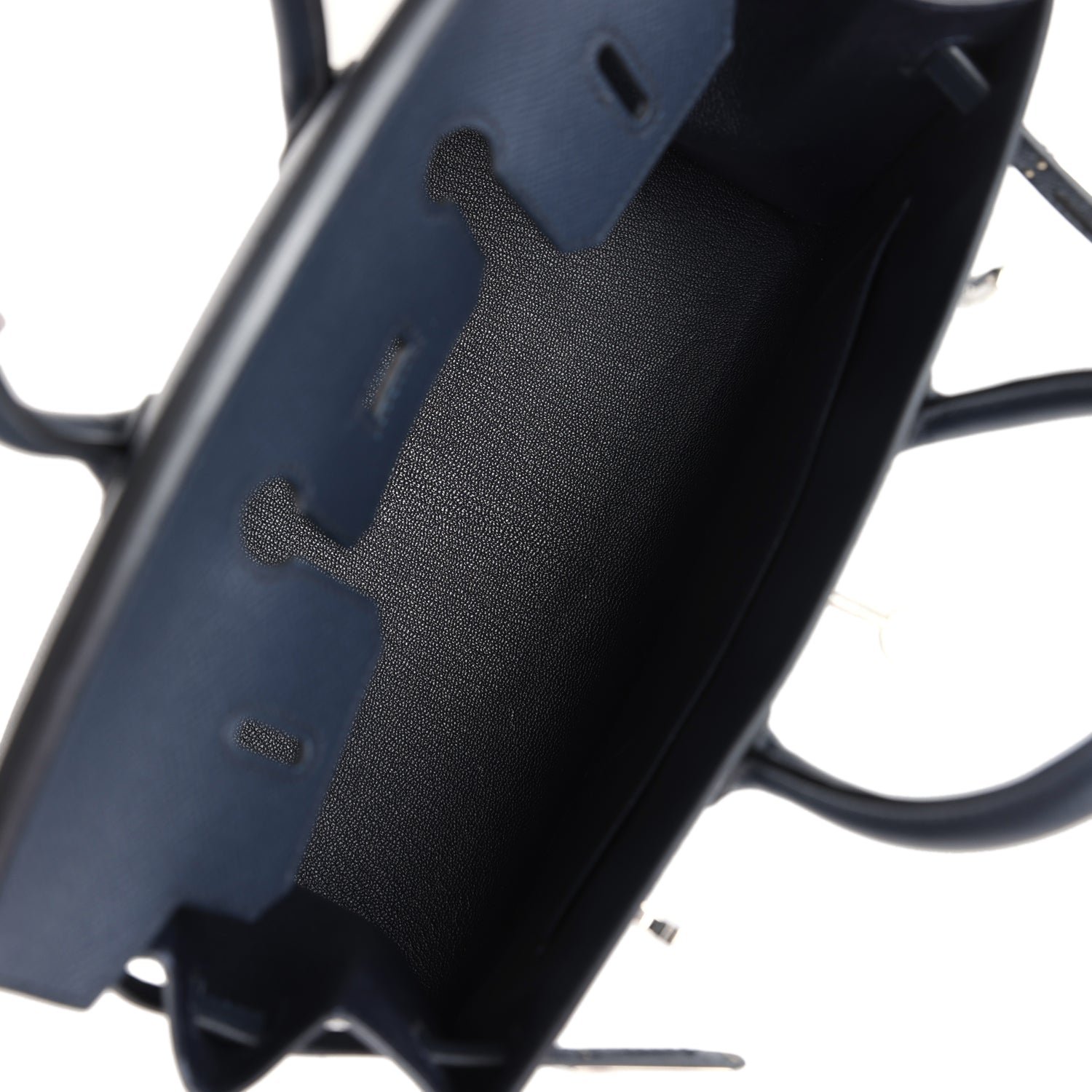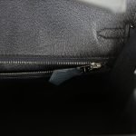 The interior is lined with Bleu Indigo chevre and has one zip pocket with an Hermès engraved zipper pull and an open pocket on the opposite side.