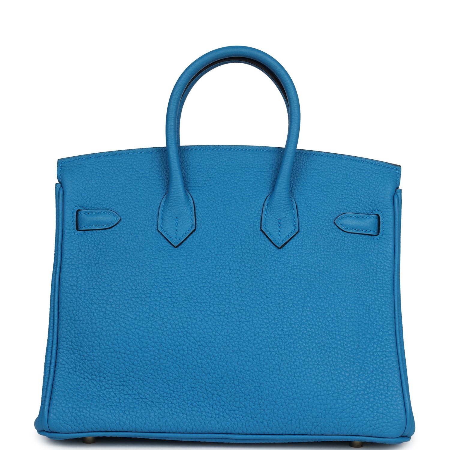 This Birkin is in Bleu Zanzibar Togo leather with gold hardware, tonal stitching, front flap with two straps, front toggle closure, clochette with lock and two keys, and double rolled handles.