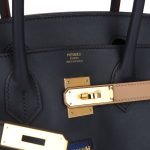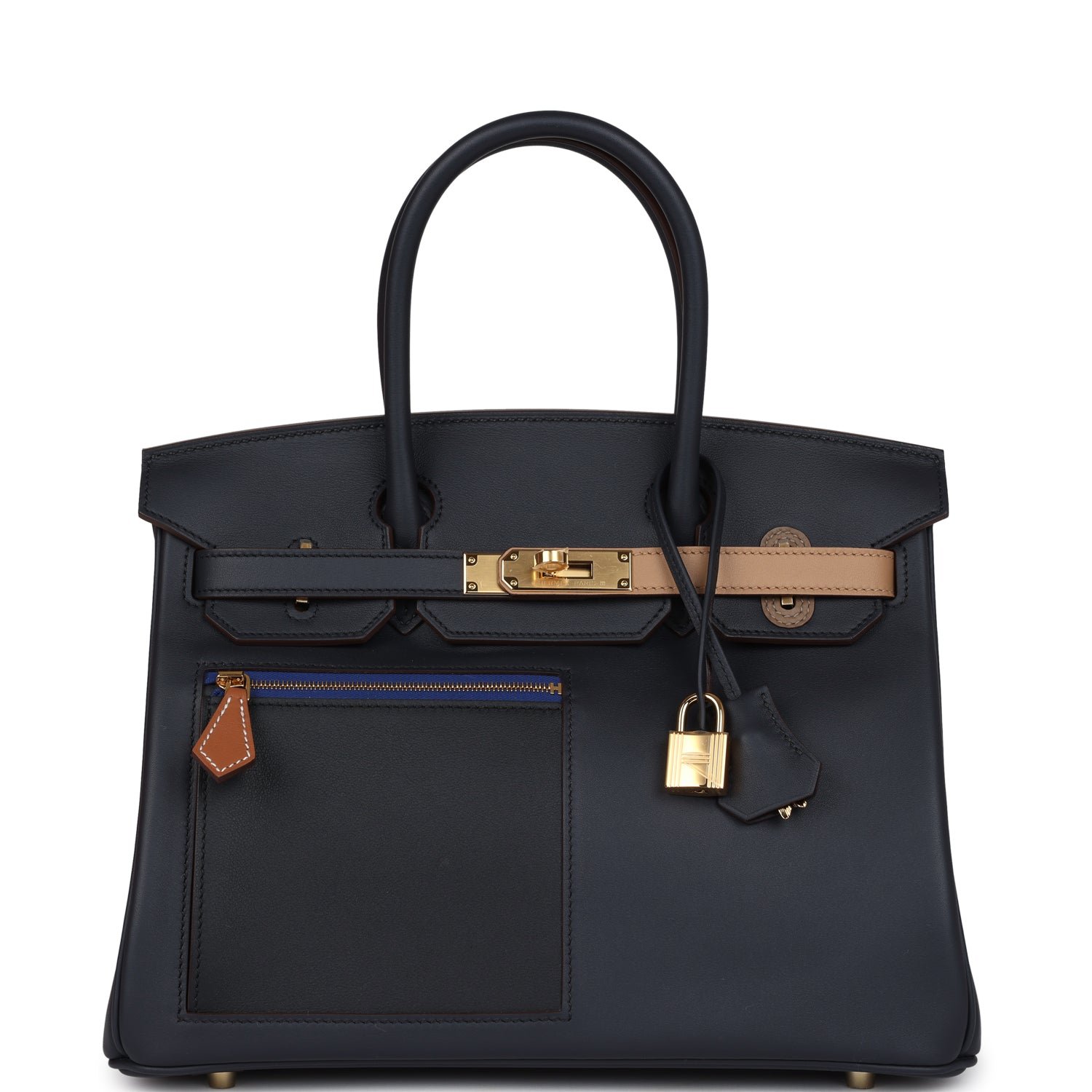 This limited edition Colormatic Birkin is in Caban, Chai and Black swift leather with gold hardware and has tonal stitching, front flap, two-tone pull straps with center toggle closure, clochette with lock and two keys, front zip pocket, back slip pocket and double rolled handles.
