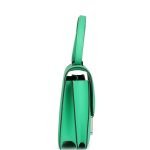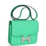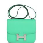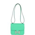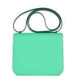 This Constance 1-18 is in Vert Comics epsom leather with gold hardware and has tonal stitching, a gold “H” snap lock closure and adjustable shoulder strap.