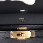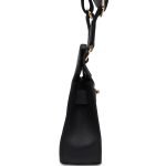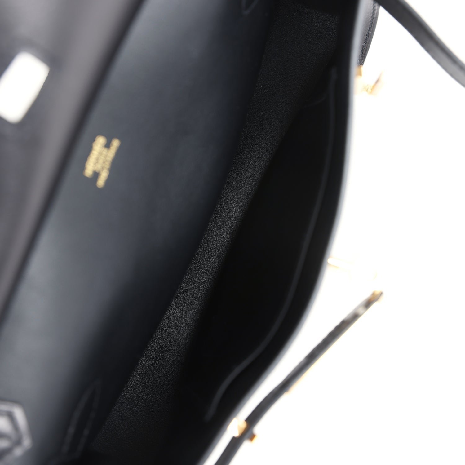 The interior is lined with Black lambskin and has one open pocket on the front wall.