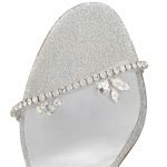 An emblematic Maison Christian Louboutin design, the Just Queen sandal is exquisitely elegant. Set atop a 70 mm heel, it is crafted in silver glitter calf leather. Two fine PVC straps envelop the foot and are adorned with a myriad of jewel-like strass, for a light yet daring style.