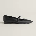 Pointed-toe ballet flat in calfskin with iconic Kelly buckle.