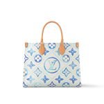 This OnTheGo MM tote is made from Monogram Tiles canvas, with its watercolor-style Monogram print and LV Circle centered on the bag. The two top handles, and concealed shoulder straps, are in cowhide leather, as are the four riveted corner tabs. This roomy bag can easily carry a laptop as well as other daily necessities.