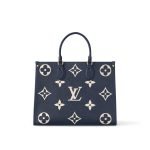 Part of the Nautical Collection, the OnTheGo MM tote in Monogram Empreinte cowhide leather features the emblematic Monogram pattern, embossed and then printed onto the leather. Roomy enough for a 13-inch laptop, it features two sets of handles:two shorter handles for hand carry and two longer handles for shoulder wear.