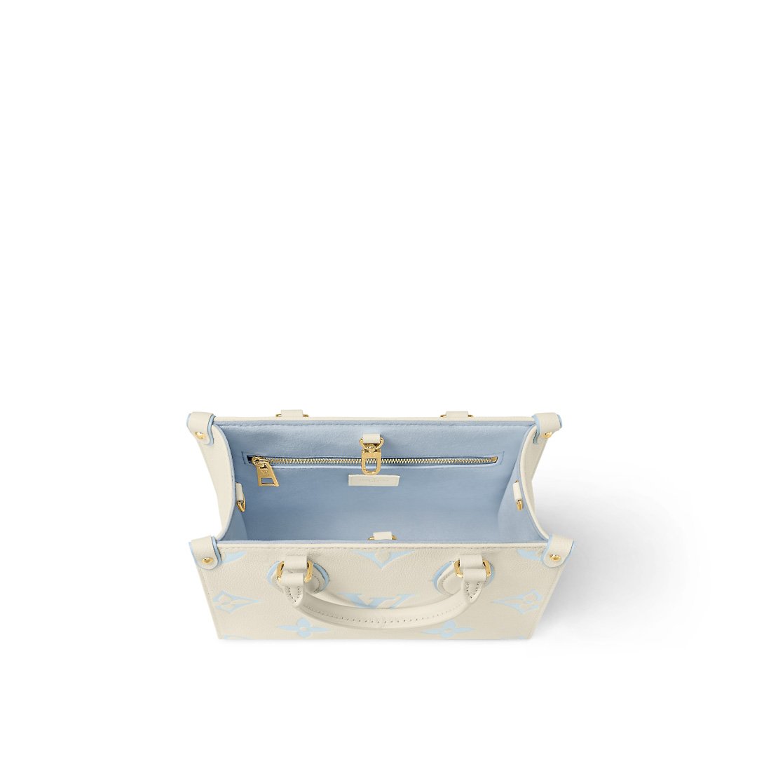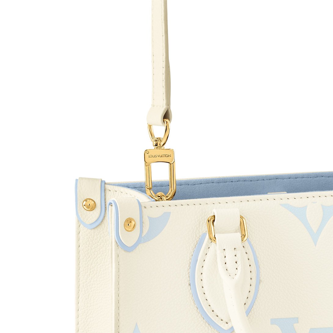 Like a cool breeze on an early spring day, the pastel colorway of this OnTheGo PM handbag refreshes and soothes at once. Printed on and embossed into the grained leather, the Monogram pattern looks bold and discreet at the same time. The leather top handles, and long shoulder strap, offer multiple carry styles.
