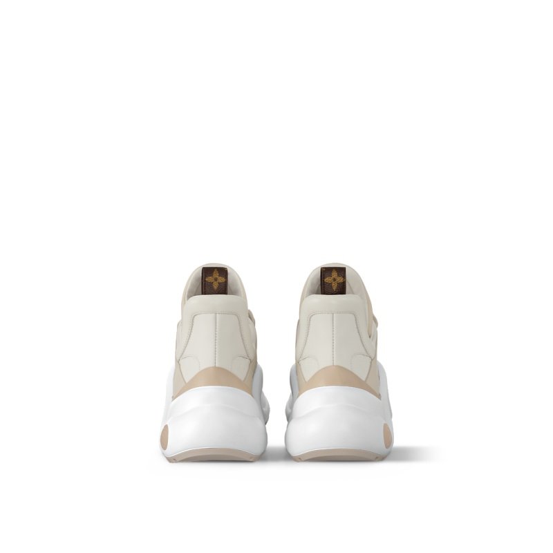 This playful reinterpretation of the LV Archlight sneaker comes in calf leather with double laces embellished with Louis Vuitton signature beads. Designed by Nicolas Ghesqui??re, this cult sneaker is instantly recognizable for its exaggerated tongue and wave-shaped outsole, both bearing the LV Circle signature. It is finished with a back loop in Monogram canvas.