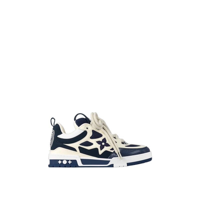 The LV Skate sneaker is reinterpreted for women in a combination of calf leather and technical mesh. This Nineties-inspired design features an elaborate, bicolor upper with Monogram Flower detailing. Key features include a padded collar, technical double laces and bicolor rubber outsole decorated with Monogram Flowers.