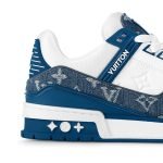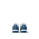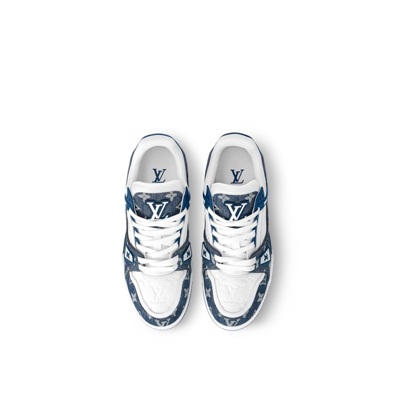 For the first time, the cult LV Trainer sneaker, a staple of the men’s collection, is revisited for women in calf leather and Monogram denim. This classic design, created by Virgil Abloh, references vintage basketball sneakers. It features numerous signature details, including the LV Initials on the tongue and side, and Monogram Flowers on the outsole.