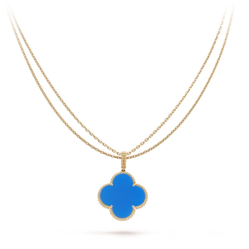 Magic Alhambra long necklace, 1 motif, 18K yellow gold, blue agate.