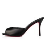 Inspired by Dolly Parton, the cute and retro Me Dolly mule has been reworked with a new heel height. This stunning model has a wide, almond-shaped peep-toe construction, and Maison Christian Louboutin??s signature 85 mm ‘fetish’ heel. This version is crafted in black nappa leather, which is further enhanced by a tonal black lining.