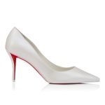 The tapered silhouette of the Miss Z pump offers sophistication. Set on an 80 mm stiletto heel that reveals the iconic red Loubi sole, this model from the Maison Christian Louboutin bridal collection is crafted from white pearlescent?nappa leather. Revealing the foot with its elegant vamp, this model features a new ‘Everlasting Red Sole’ thanks to an innovative coating technique that ensures resistance and lasting vibrancy for our signature Louboutin red.