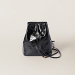 Retro inspiration defines this naplak patent leather pouch. The special treatment of leather and metal lettering logo embody the experimental and bold elegance of Miu Miu.