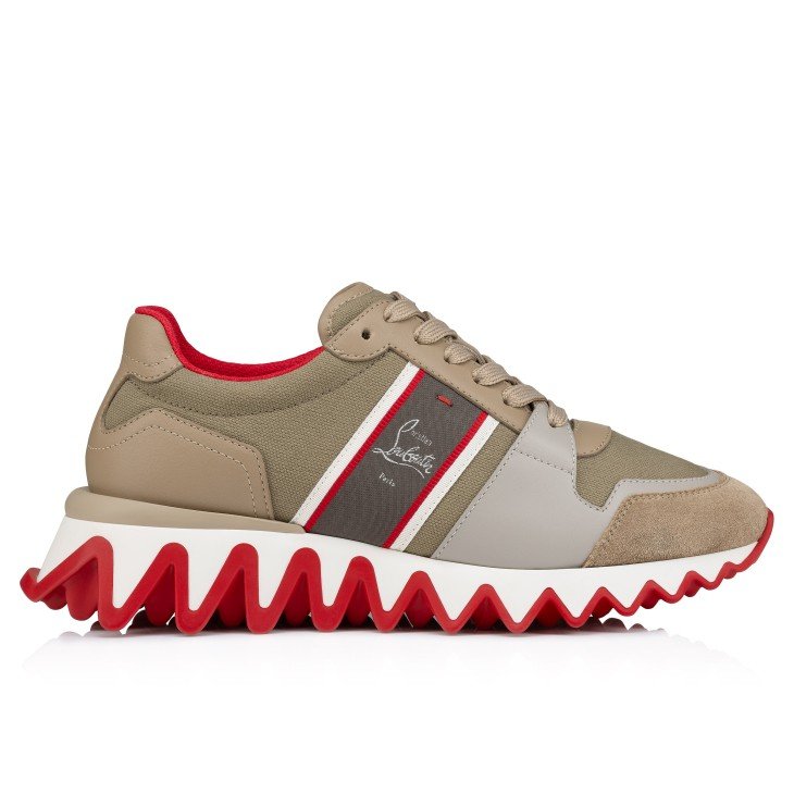 The Nastroshark sneaker for women has an audacious look. Inspired by the iconic Loubishark, it sits on a two-color rubber sole evoking shark teeth. This model in all-over white is crafted in calf leather and fabric. This sporty sneaker features a signature Maison Christian Louboutin three-color ribbon.