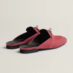 Mule in suede goatskin with iconic palladium-plated Kelly buckle.