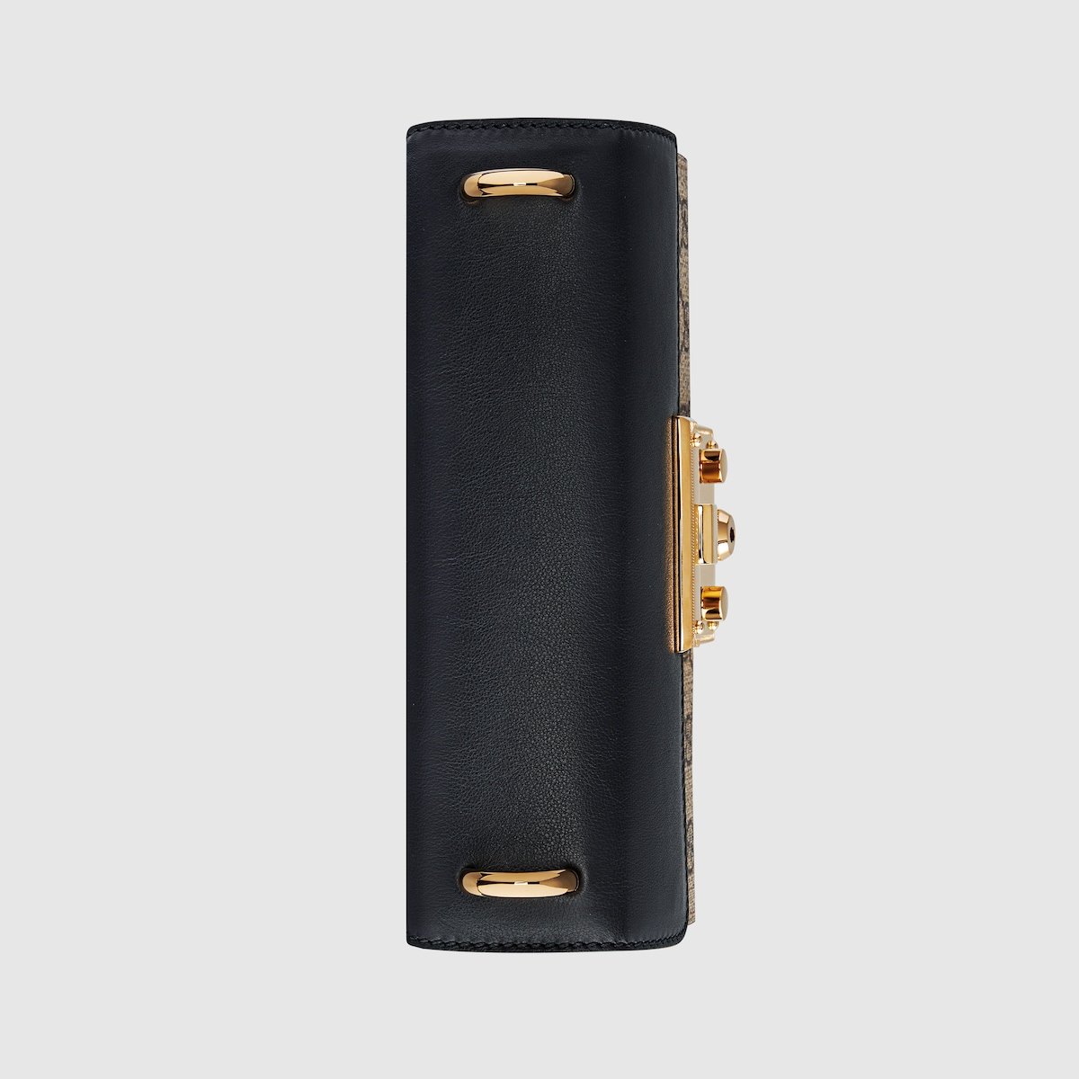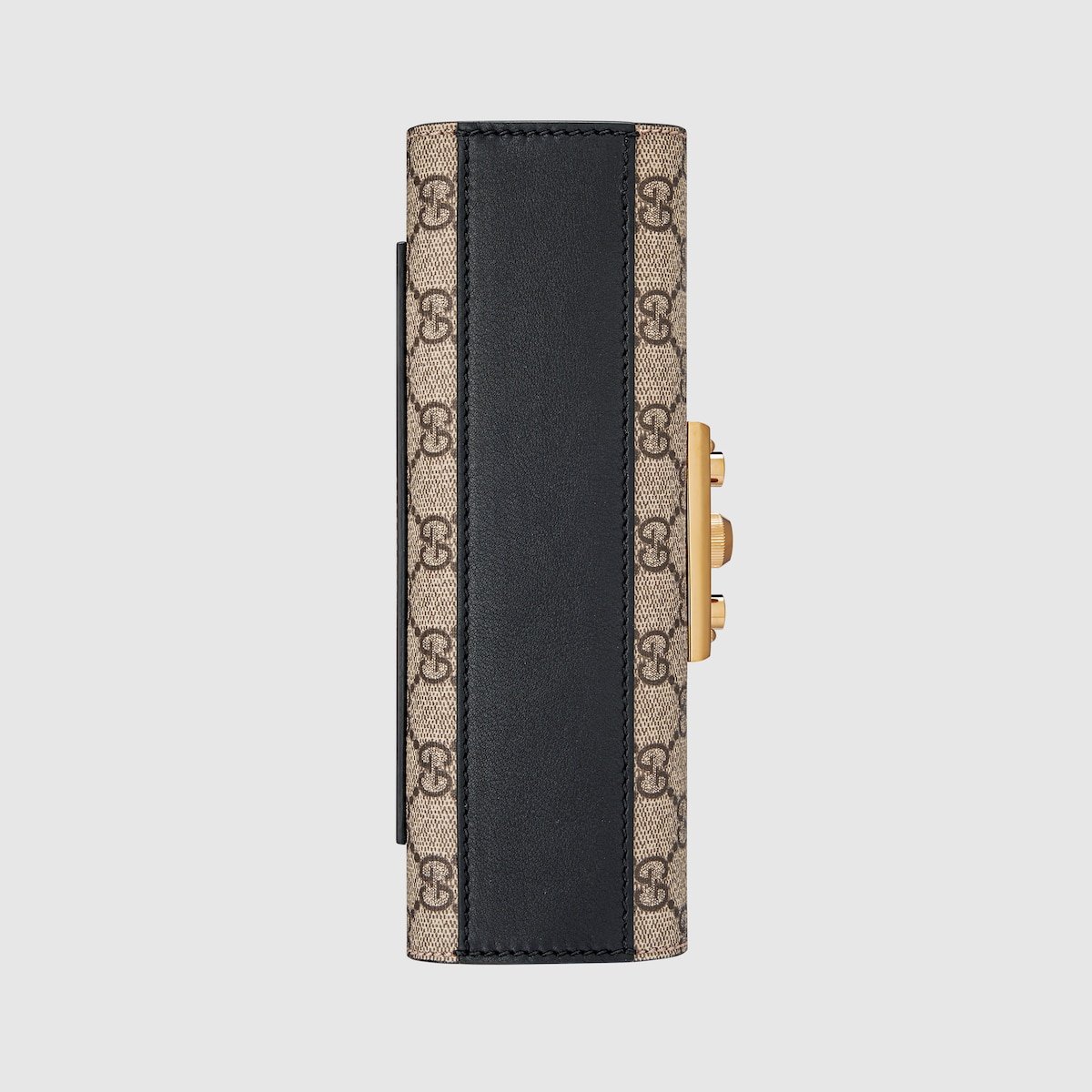 The Padlock’s structured shape is presented in GG Supreme canvas with a black leather upper. Recalling the brand’s origins in the world of leisure and luggage, the small shoulder bag is defined by its padlock closure.
