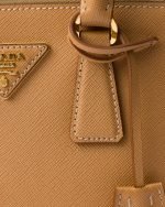 Production of the Prada Galleria bag, composed of 83 pieces, is an authentic fusion between industrial precision and the refined accuracy of craftsmanship that can only be performed by hand. The design is clean and elegant yet innately pragmatic, an aesthetic language blending form and function that combines history and modernity. Originating the definition of “timeless”, the Galleria bag has become a hallmark of Prada’s identity in the twenty-first century. The accessory, presented in the mini version, is made of iconic Saffiano leather that was patented by the founder of the brand and features a crosshatch texture and waxed finish.
