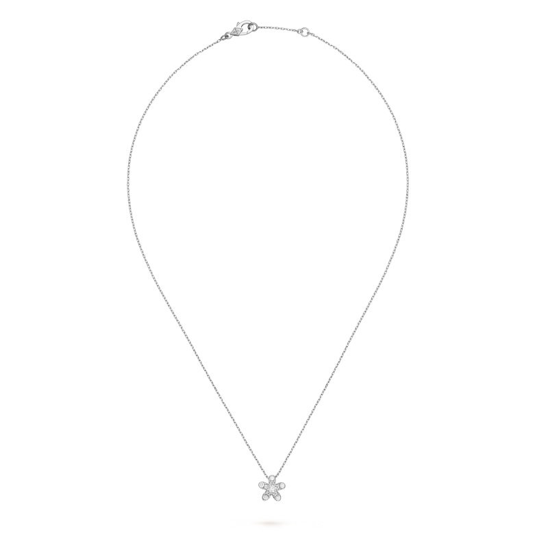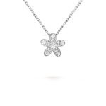 Socrate pendant, 1 flower, rhodium plated 18K white gold, round diamonds; diamond quality DEF, IF to VVS.The pendant is attached to the necklace’s chain