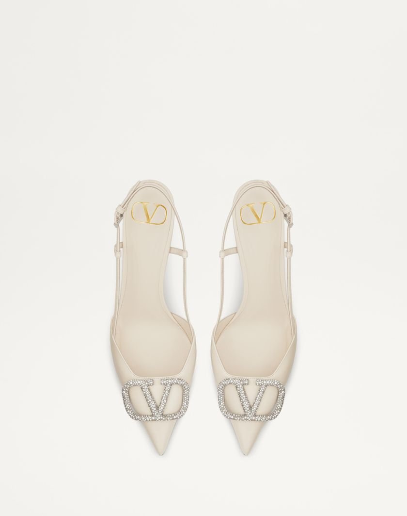 Valentino Garavani slingback pump in calfskin leather with VLogo Signature embellishment.