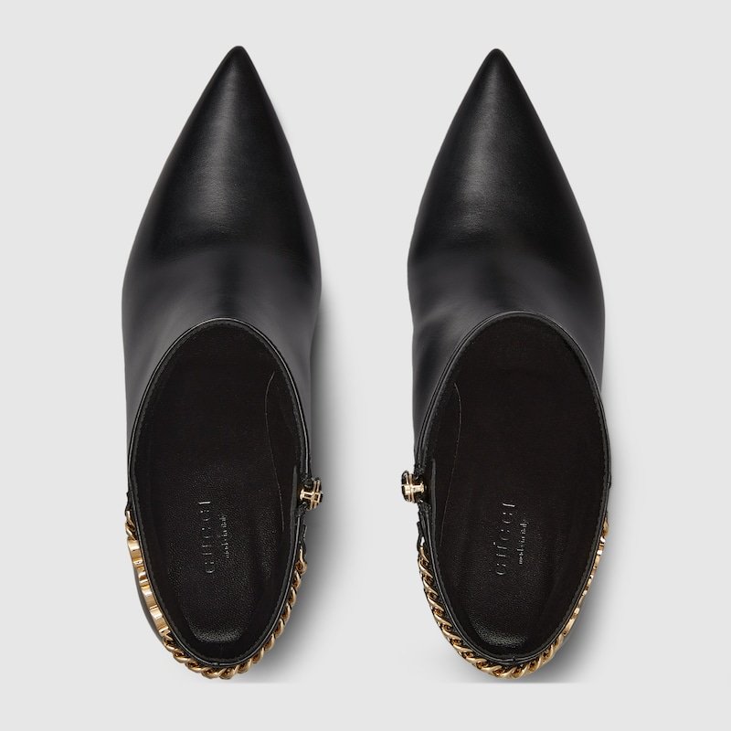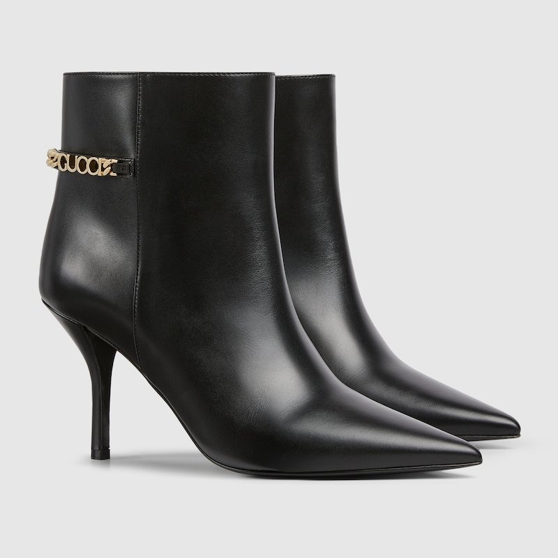 The Gucci Signoria line, named after the central piazza of Florence, recalls the classic elegance of the House’s founding city. With its shiny leather, pointed toe and eye-catching Gucci chain, this style elevates the everyday wardrobe for the coming season.