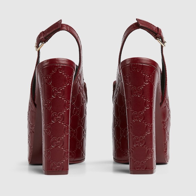 Gucci continues to feature archival symbols. For the latest collection, the Horsebit hardware recalls the House’s equestrian heritage. This pair of women’s slingbacks are defines by the platform high heel that offers stability and comfort.