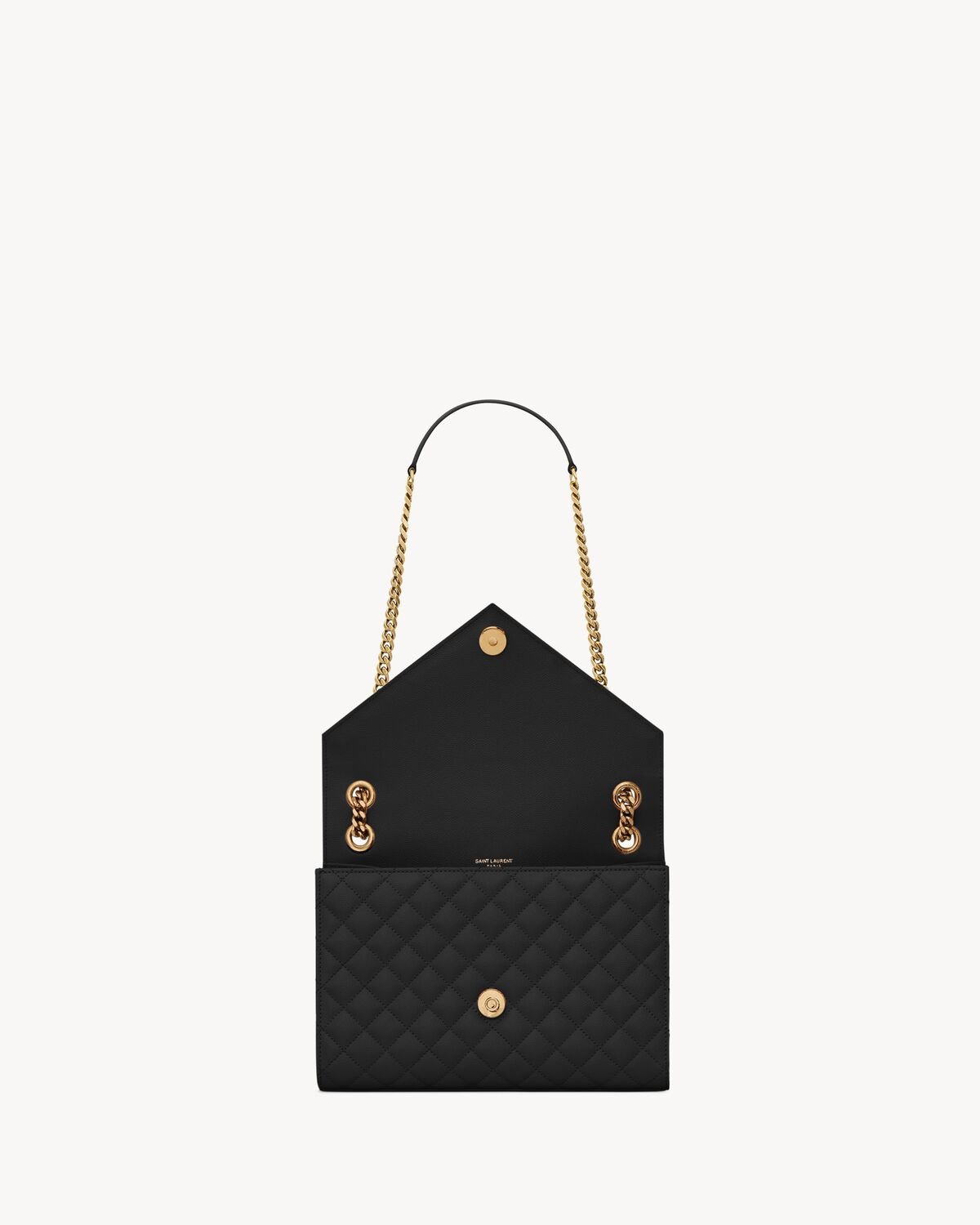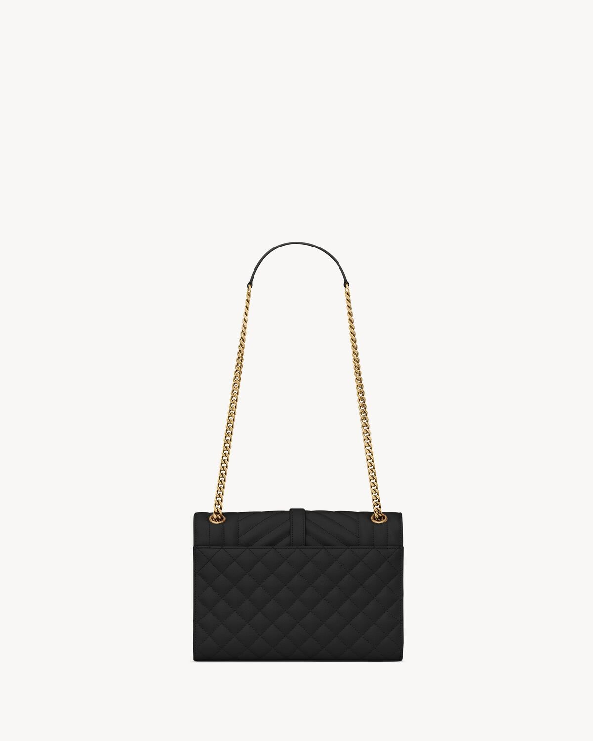 TIMELESS ENVELOPE FLAP BAG IN GRAIN DE POUDRE EMBOSSED LEATHER, FEATURING CHEVRON AND DIAMOND QUILT OVERSTITCHING.